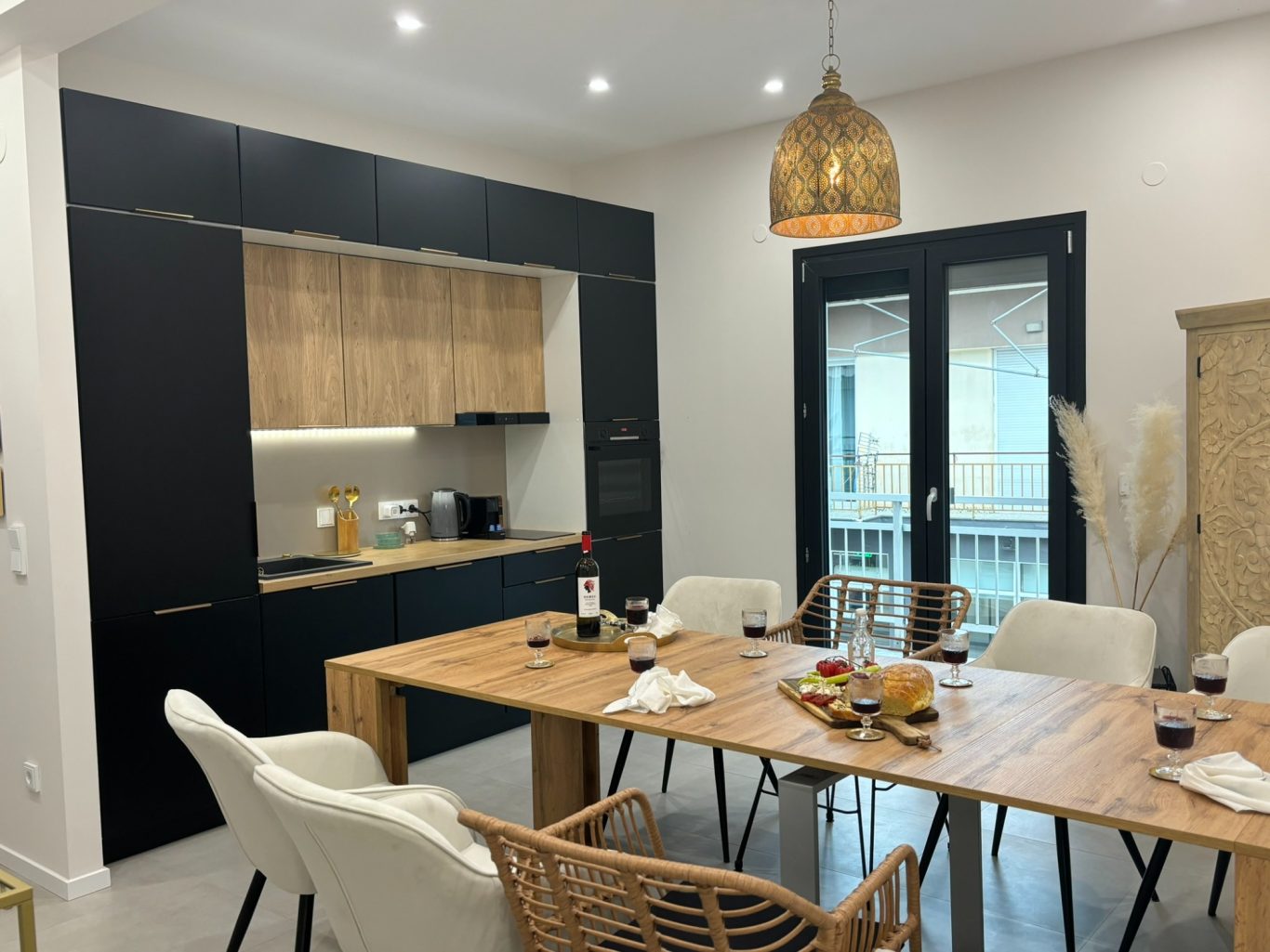 Die vollausgestattete, modernen Küchenzeile, die mit den modernsten Geräten bestückt ist, möchte Paare und Freunde zu gemeinsamen kulinarischen Experimenten bei einem Glas Wein in der Hand und in der Soße verlocken. :)