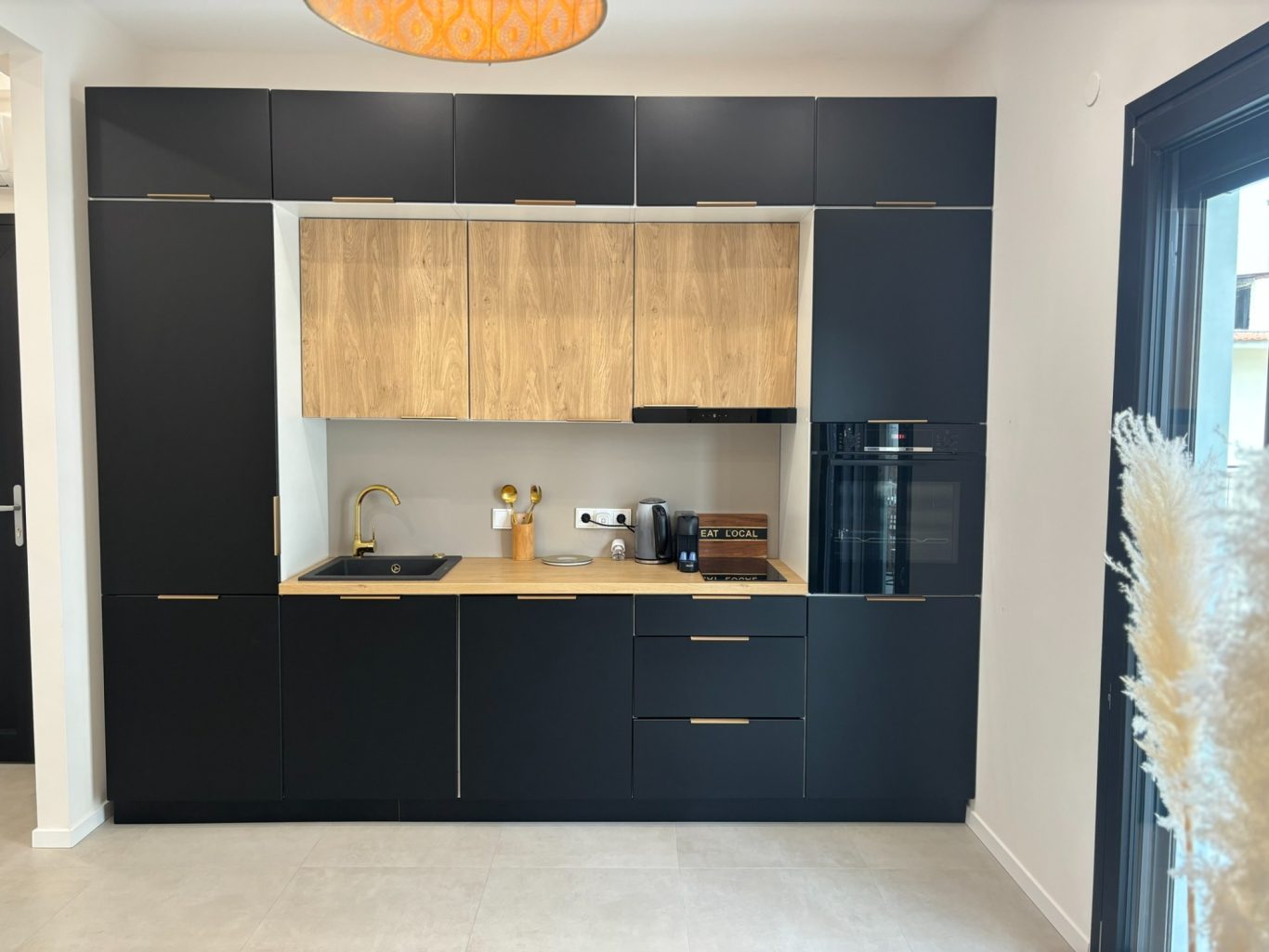 Die vollausgestattete, modernen Küchenzeile, die mit den modernsten Geräten bestückt ist, möchte Paare und Freunde zu gemeinsamen kulinarischen Experimenten bei einem Glas Wein in der Hand und in der Soße verlocken. :)
